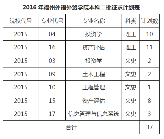 1、2016年福州外语外贸学院本二批征求志愿计划表