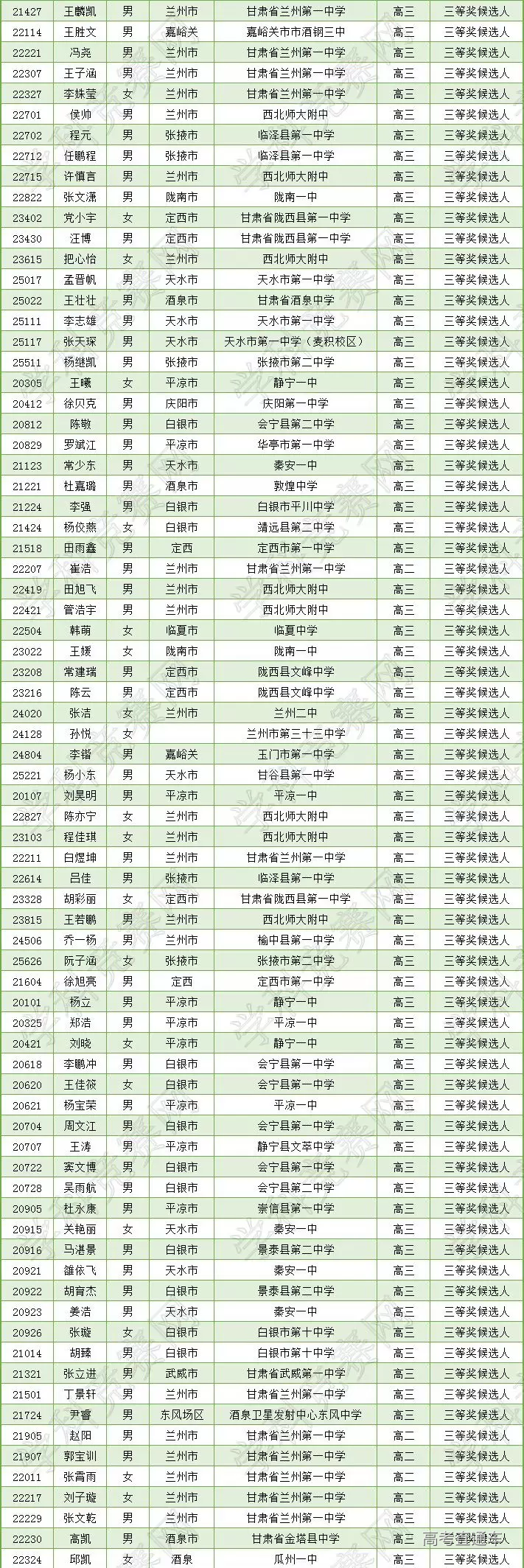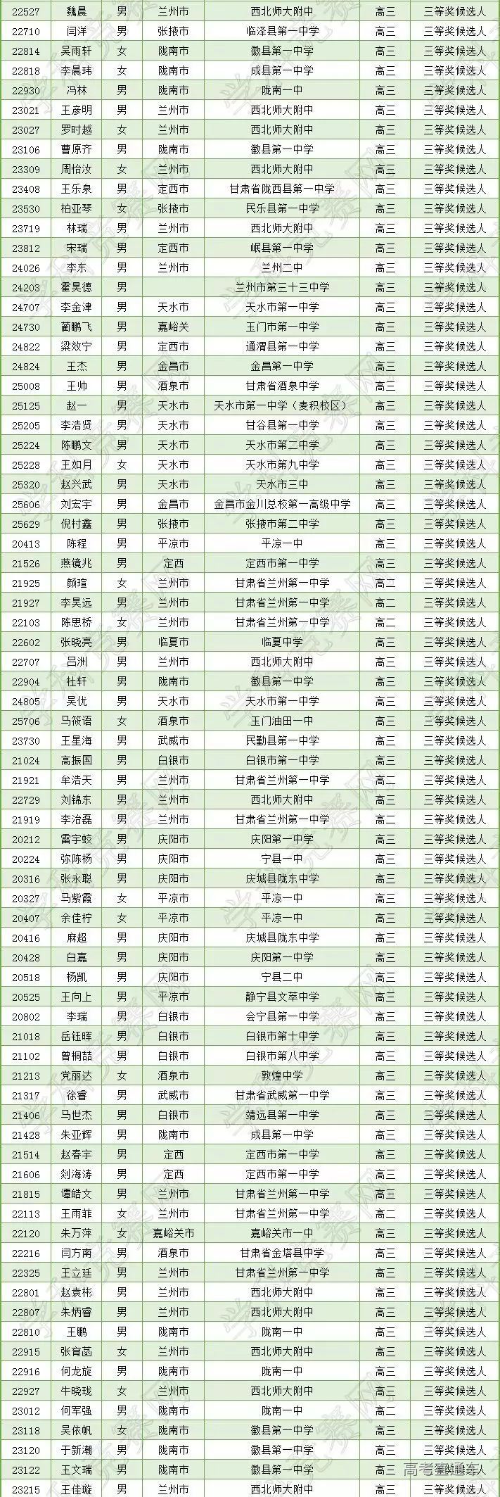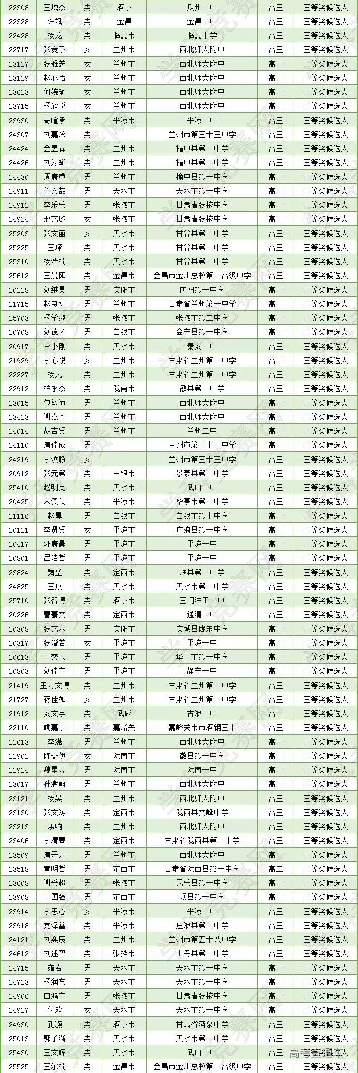 甘肃发布了2019数学高联省一、省二、省三全部获选人获奖名单,其中“省一”68人、“省二”239人、“省三”444人。