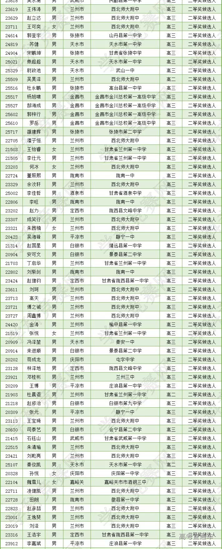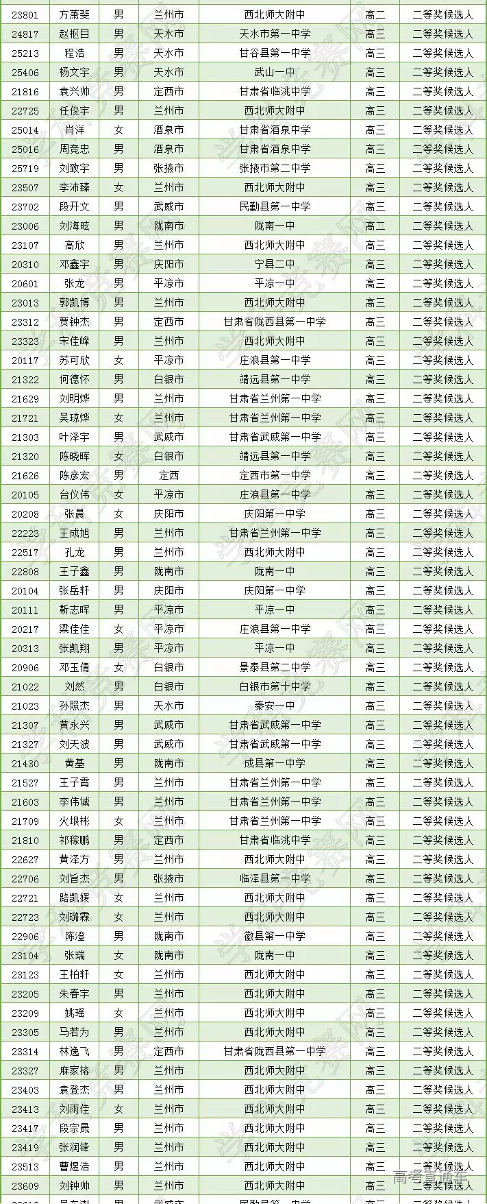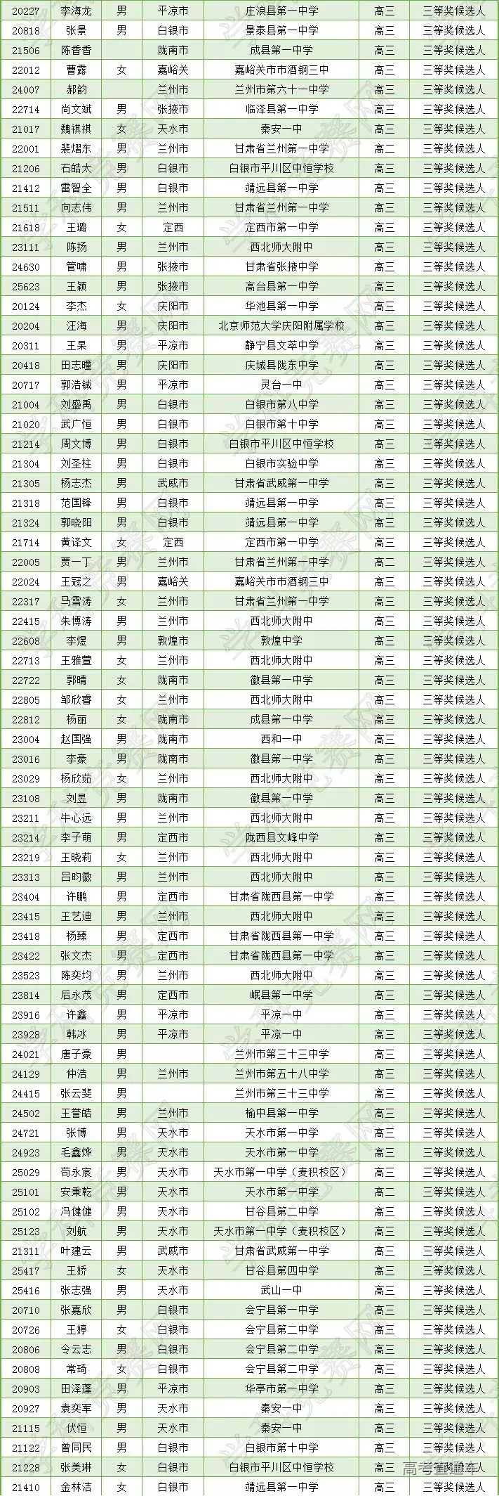 甘肃发布了2019数学高联省一、省二、省三全部获选人获奖名单,其中“省一”68人、“省二”239人、“省三”444人。