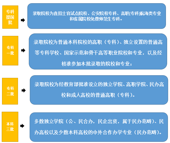 不同省份,可以根据当地的需求,设定不同的录取批次,以2018年部分省份录取批次设置为例: