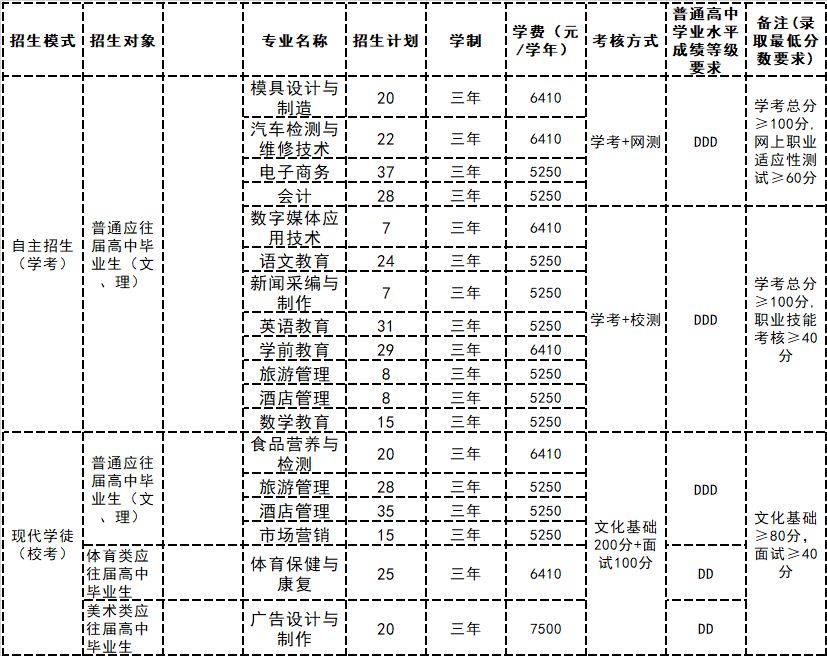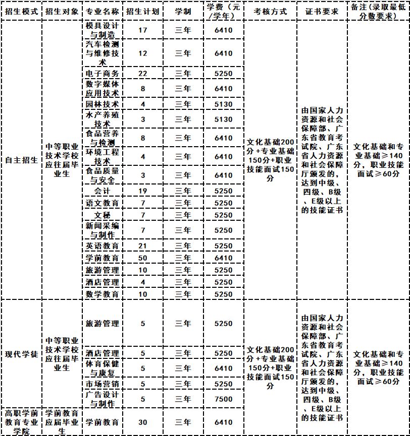阳江职业技术学院2019年自主招生计划