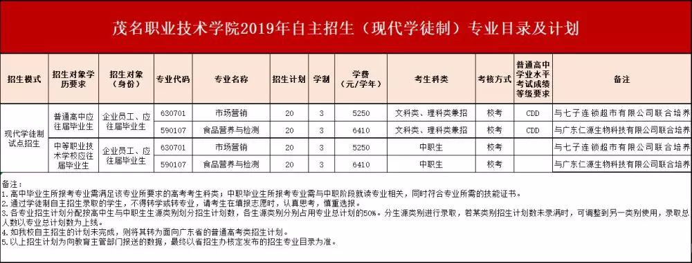 茂名职业技术学院2019年自主招生(现代学徒制)招生简章