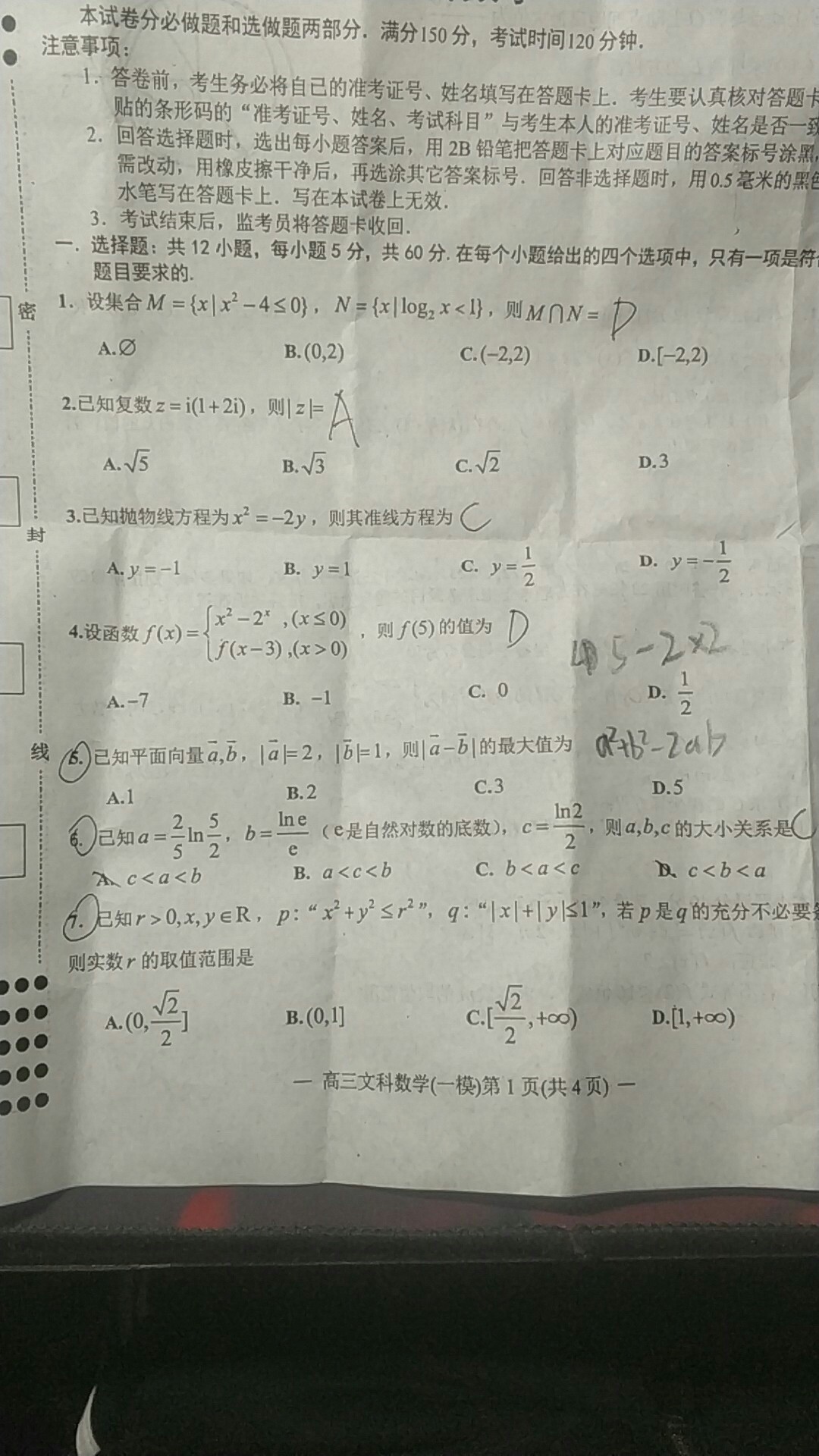 2020南昌一模各科试题及参考答案汇总(考后更新)-高考直通车