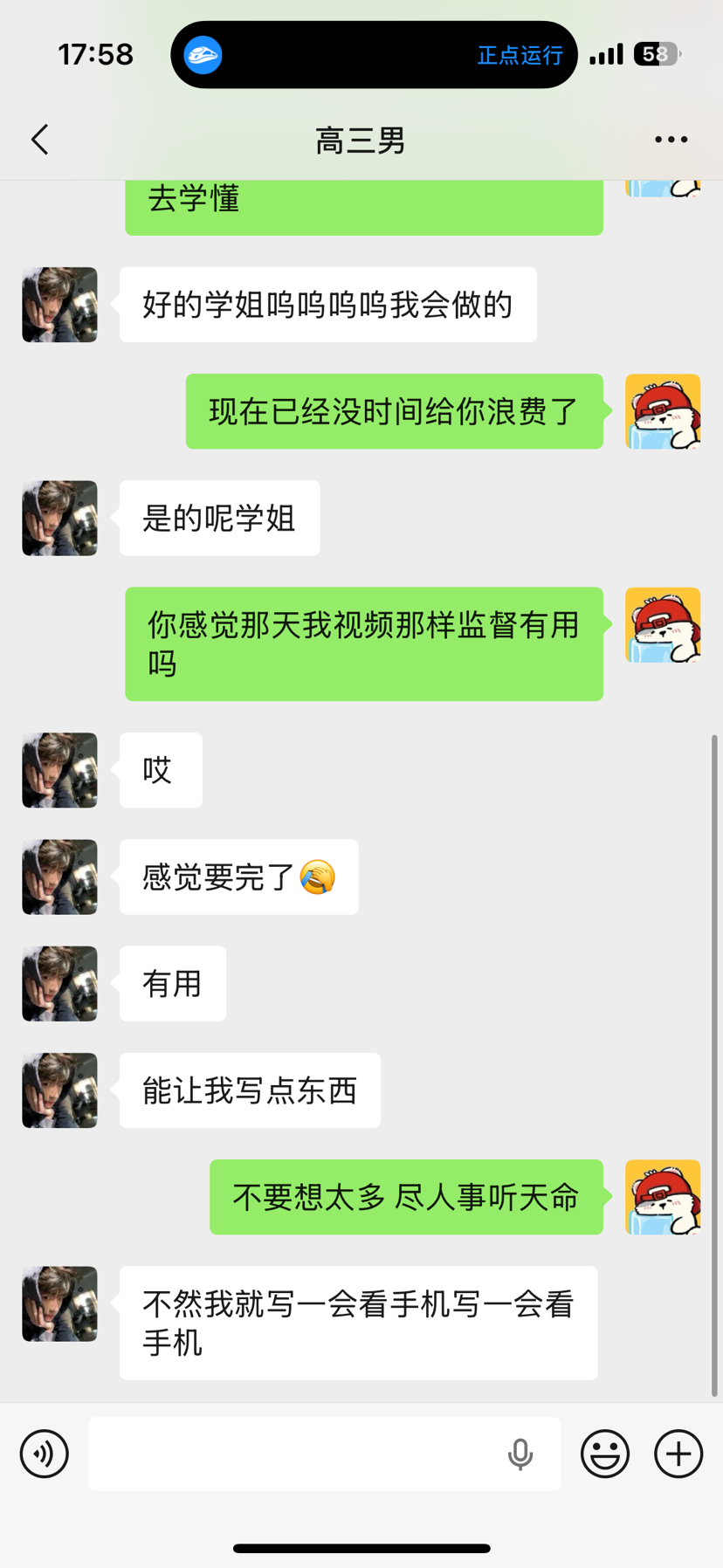 本人一本大三学姐 想做一个监督学习员 可以开会议视频监督学习 可以检查你的学习任务 也可以找我聊天发泄情绪 甚至可以早上叫醒 如果假期不想荒废时间就来找我吧