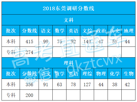 2018东莞调研分数线出炉