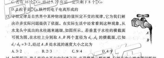 武汉五调这题,如果是流量不变算到速度比2:3啊,