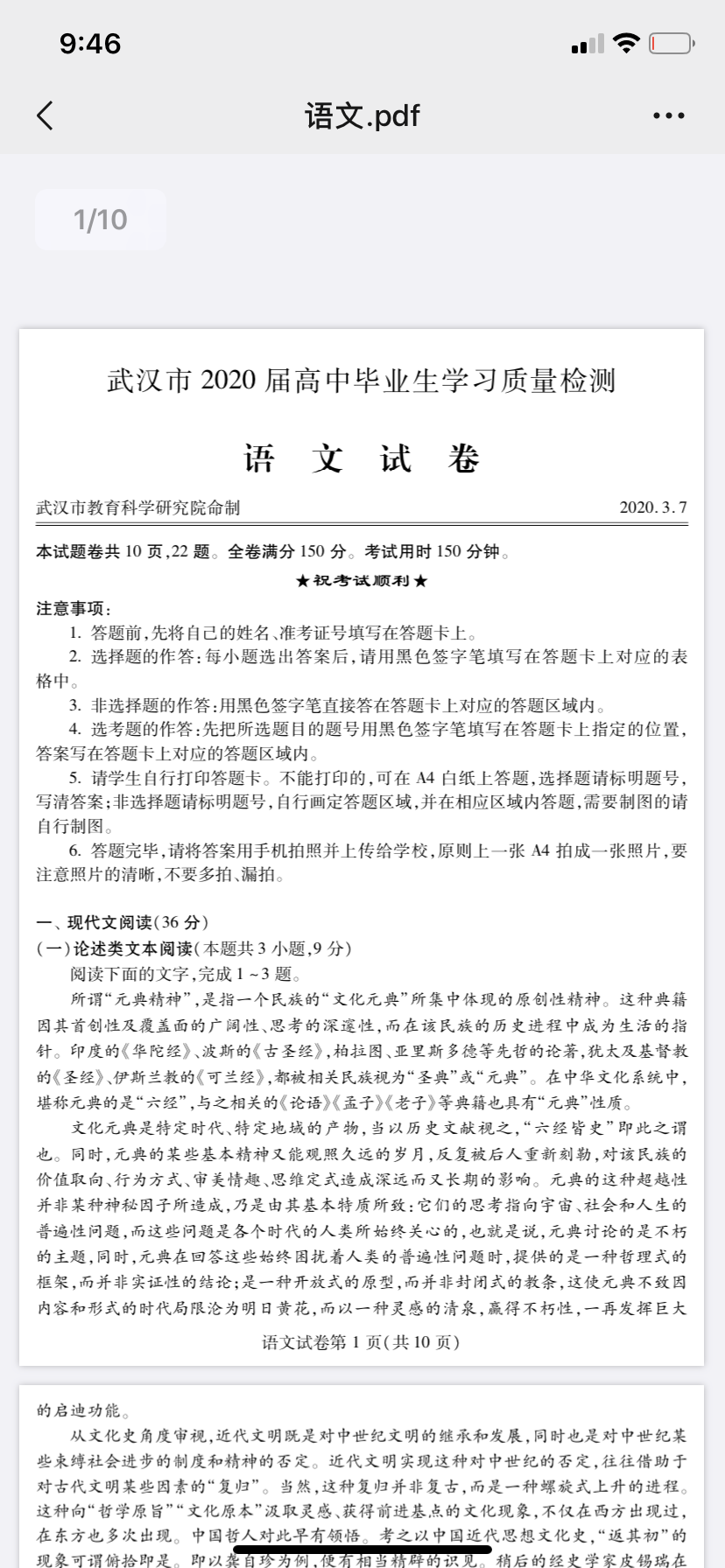 武汉市2020届高中毕业生学习质量检测考试,各位觉得是否直击痛点呢?