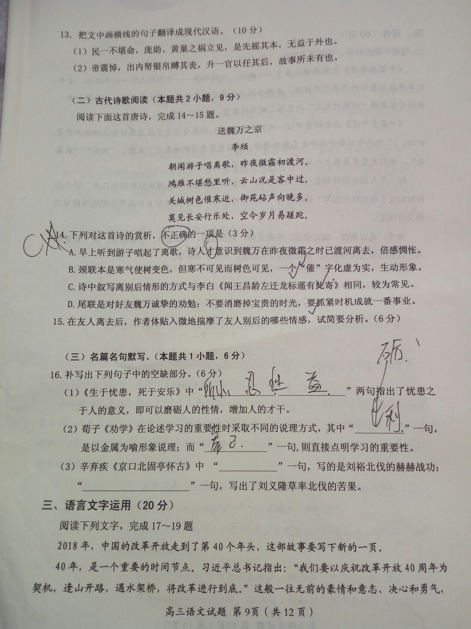 各位大佬,怎么办,我成都三诊不能说是抄的答案吧,我是提前看了一下卷子,做了一些题,然后考试的时候多了一些时间来做其他题,然后这次考得超级高(655),怎么办,我该怎么给老师说这次“发挥超常”?????怎么办呀,挺急得
