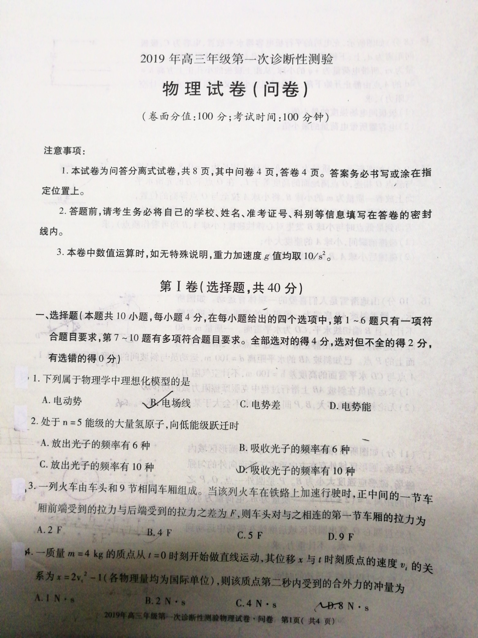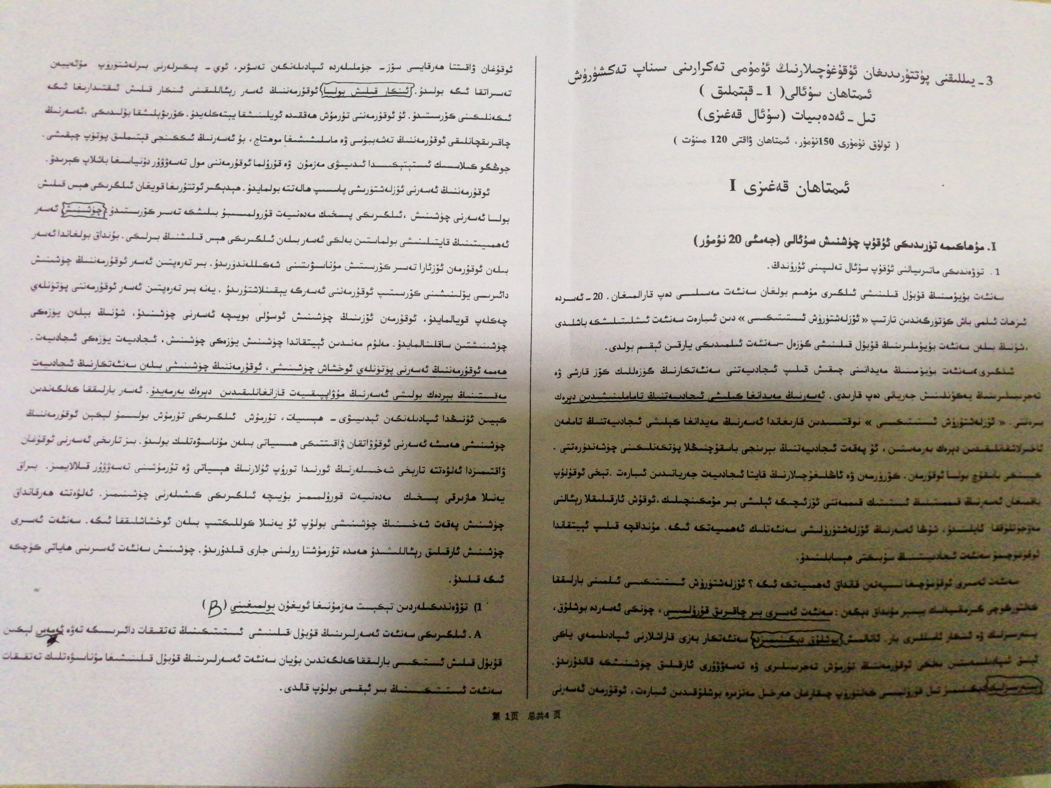 2019新疆维吾尔自治区普通高中第一次诊断性检测(维语语文)