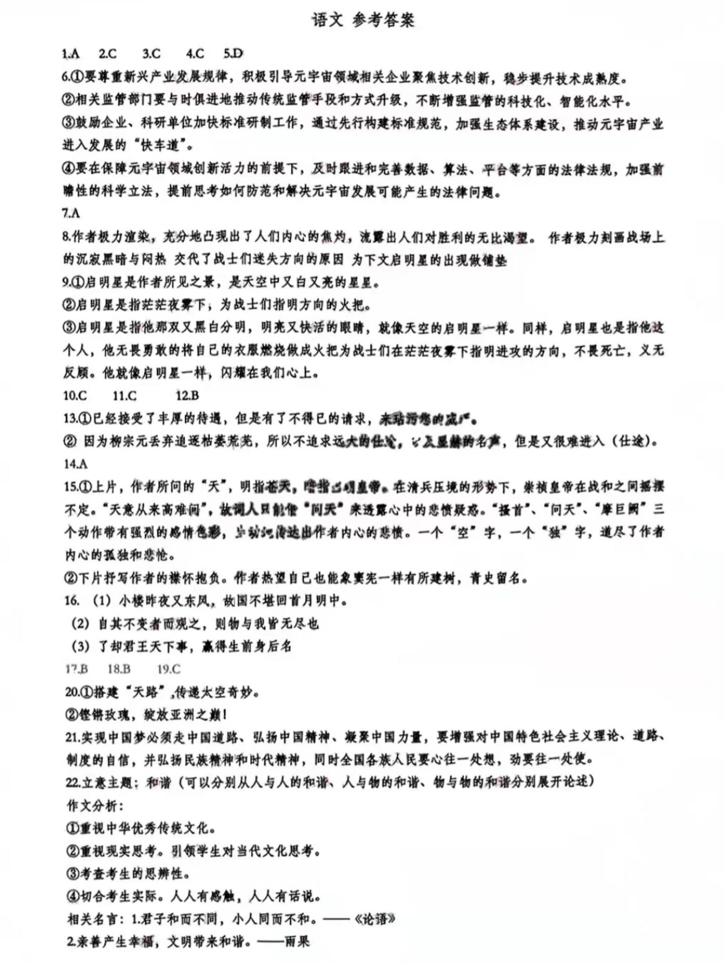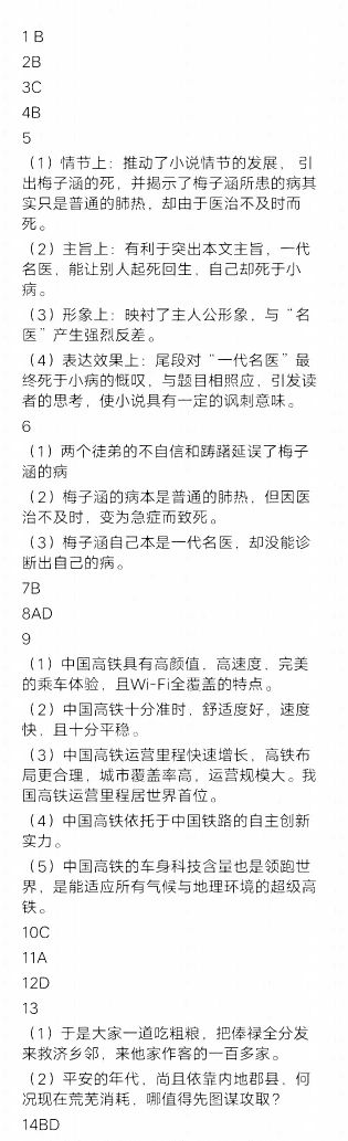 东北三省三校二模语文答案