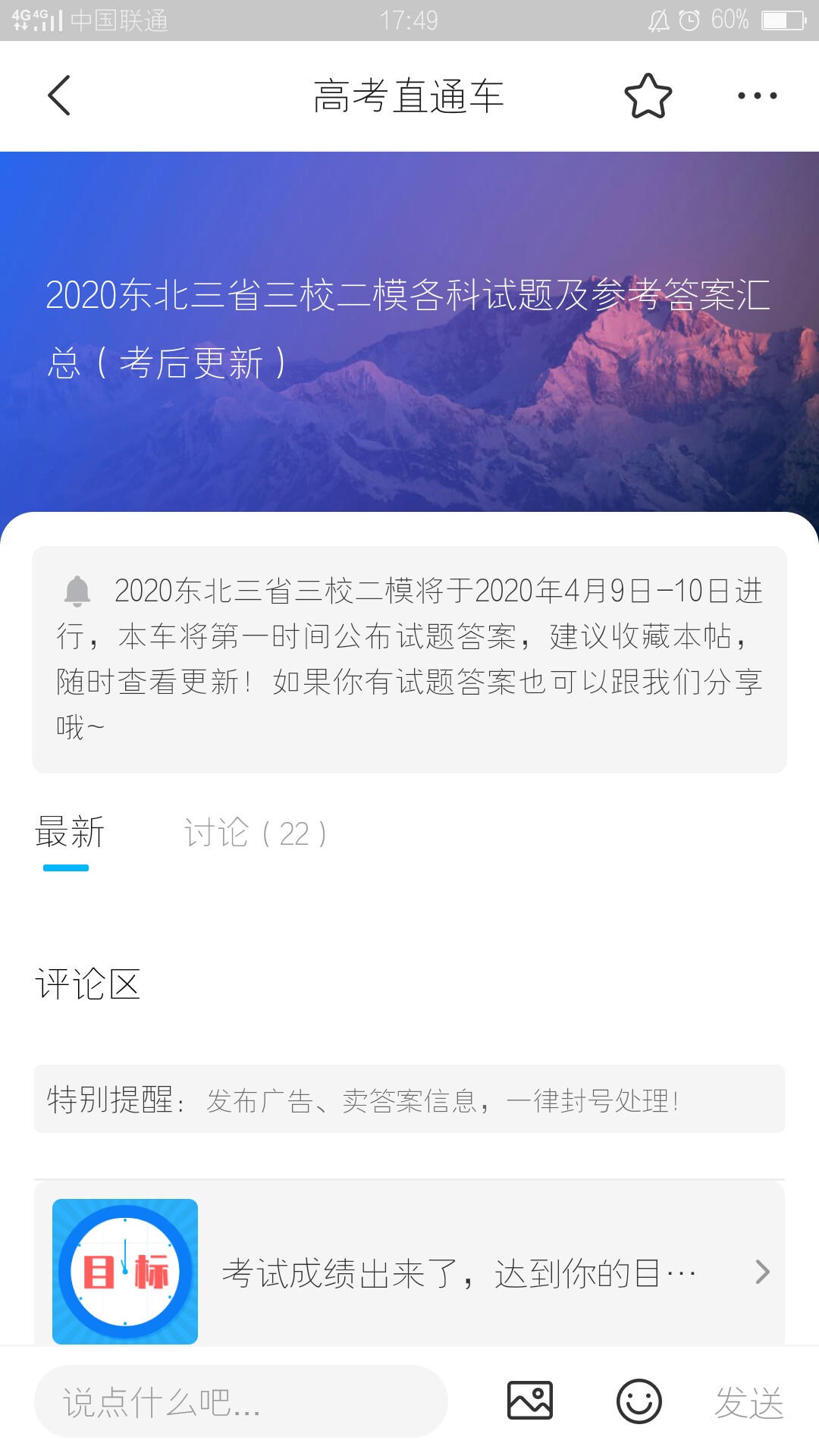 4.22是哪的考试 是东北三省三校二模 还是四市二模 还是沈阳