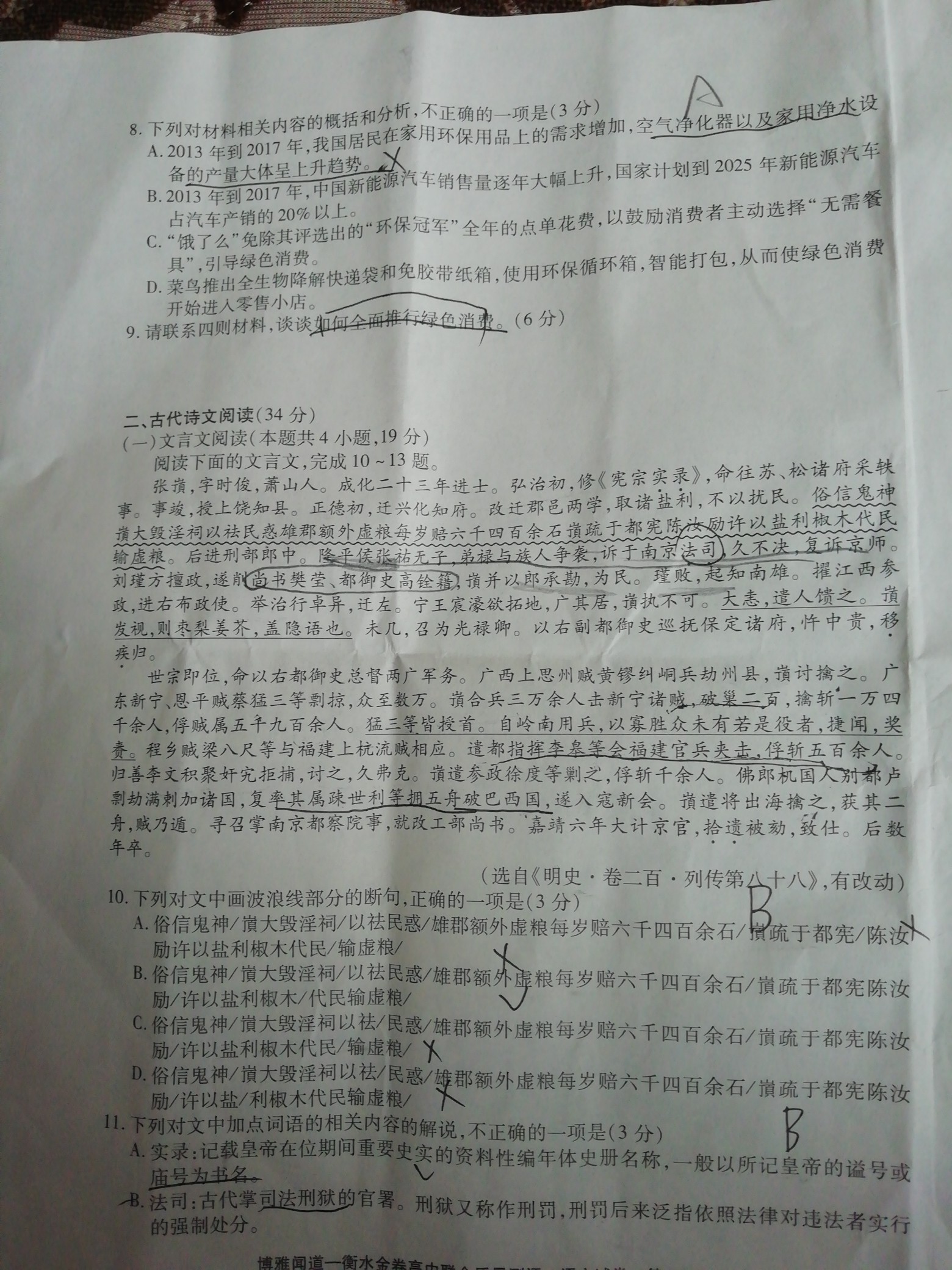 哪位可爱的小伙伴有衡水三调历史和政治答案及题的,麻烦发一下