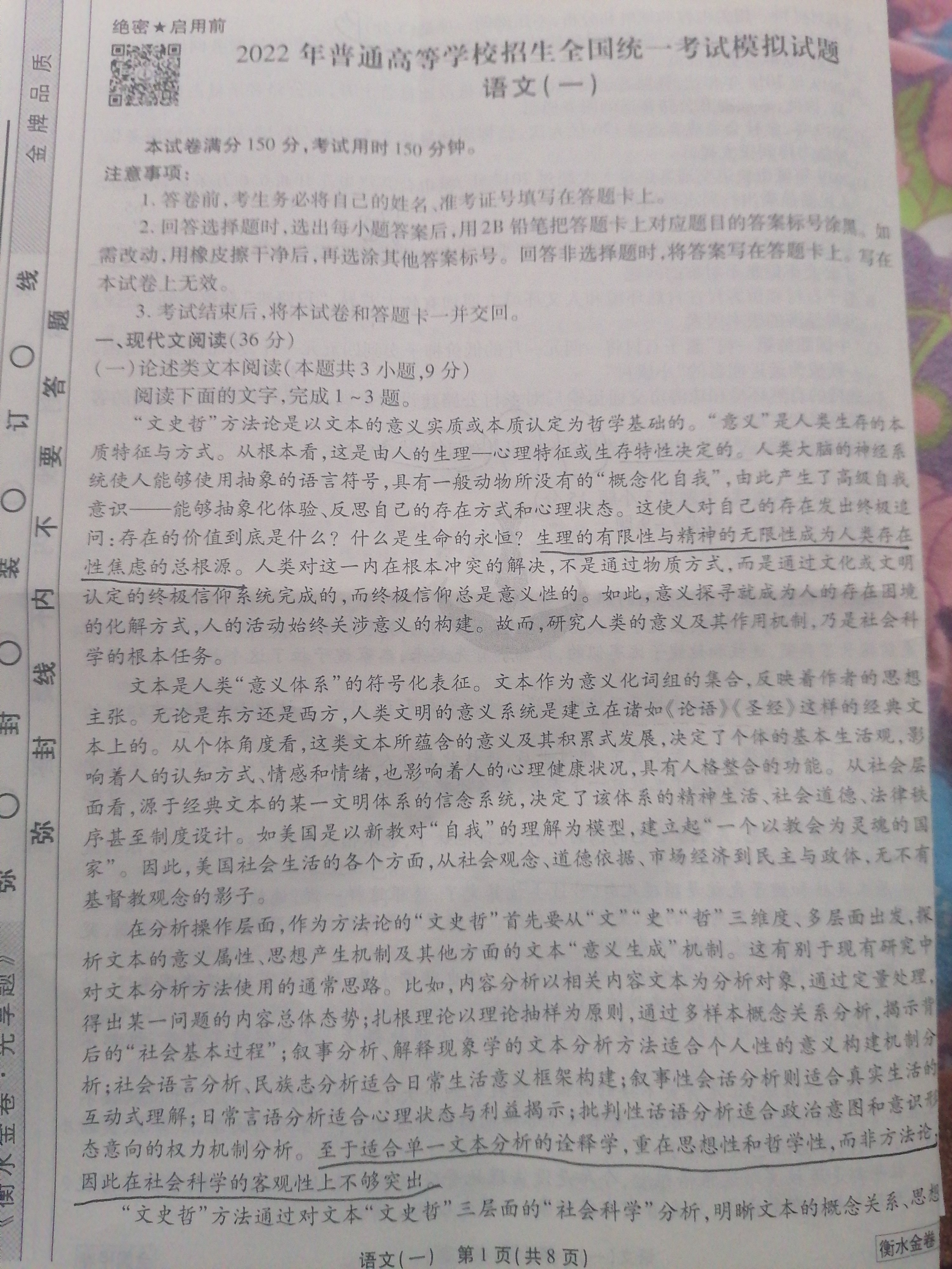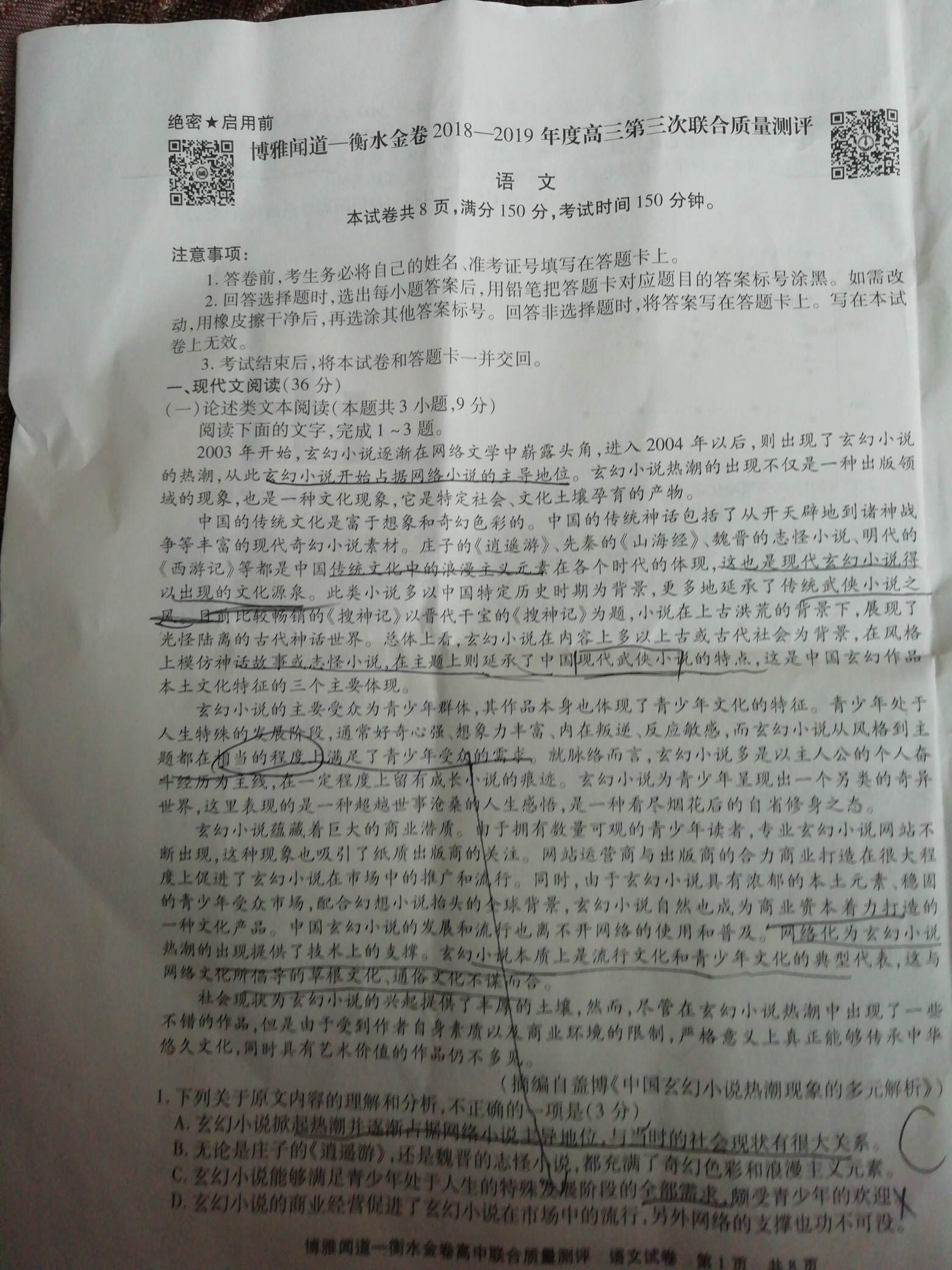 衡水金卷有人考了吗,听我朋友说难到想上天[doge]