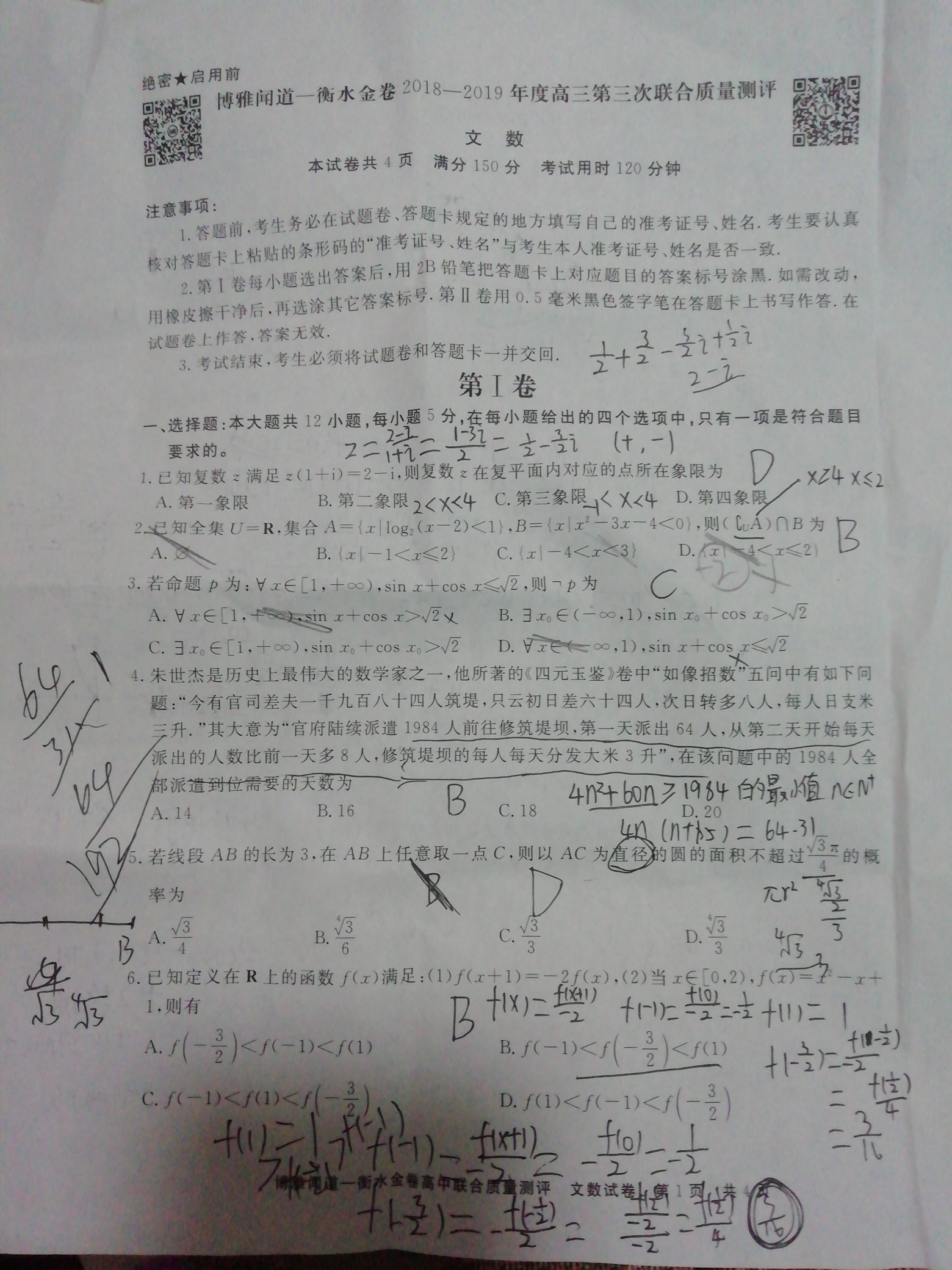有衡水金卷高三模拟考调研题(三)的答案吗