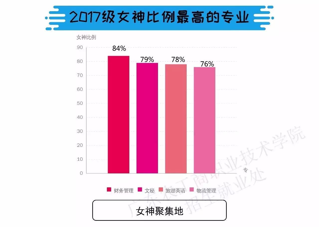 所有专业中女神占比例最多的是财务管理专业,男神占比例最多的是电子信息工程技术专业,重点是电子信息工程技术专业男神占据100%,只想一睹容颜……