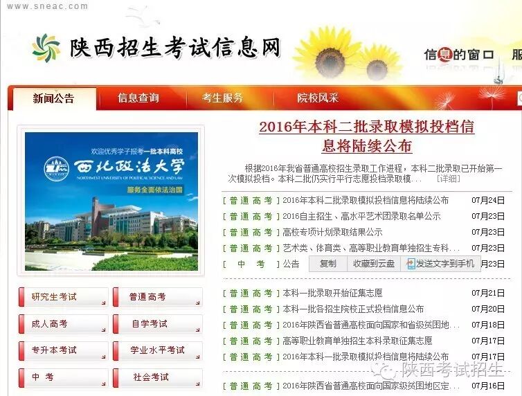 本科三批和高职(专科)批次各安排一次征集志愿(高职〔专科〕批次视录取情况决定是否第二次征集志愿),征集志愿也采用网上填报方式,征集志愿时间及相关信息将通过陕西招生考试信息网(www.sneac.com)、手机短消息和新闻通稿等方式公布。