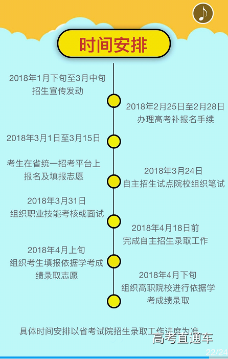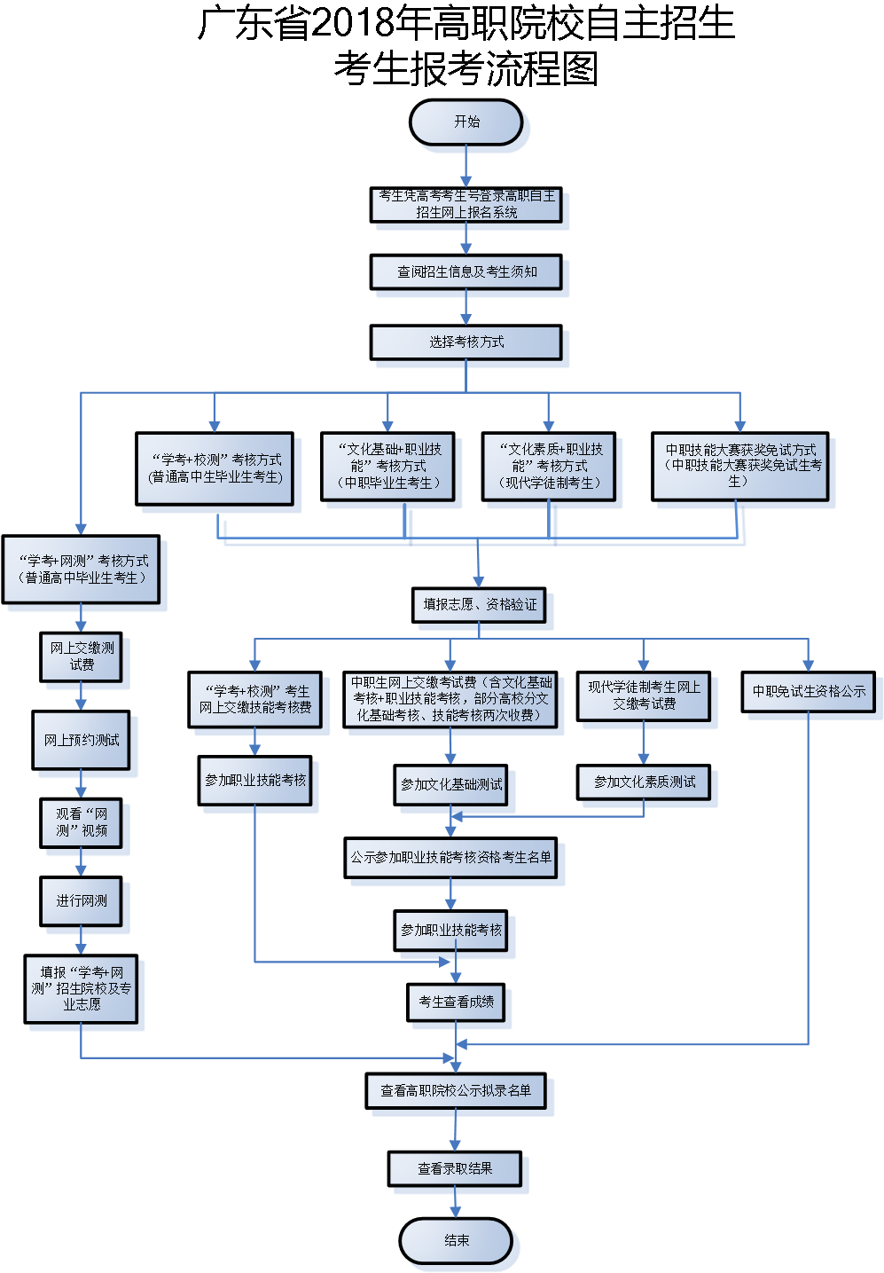 一、2018年我校自主招生“新政”抢先看 1、我校12个专业645个自主招生计划囊括广东省自主招生所有考核方式及招生对象: ①面向普通高中毕业生招生,“笔试”统一采用高中学业水平考试的语、数、英三科成绩(满分为300分),无需来我校参加“笔试”,省时省力! ②面向中职毕业生招生以及现代学徒制的专业,所有考核均由我校自主命题。 ③软件技术专业面向普通高中毕业生招生,“面试”采用“网测”方式,自主招生整个考核过程均不需要到我校,被本专业录取的自主招生考生直接在9月新生报到时见! 2、全省统一报考平台,考生无需寄送材料到我校,直接网上报考,学校网上审核,轻松便捷省时! 3、分类招生计划超过学校总计划一半,使分类考试录取成为高职院校招生录取的主渠道。 4、普通高中毕业生可先报考3月进行自主招生试点招生,如尚未录取可继续报考接下来4月份依据学考成绩录取招生(我校学考录取招生计划2000人)。如以上两种模式均无被录取,可继续参加6月份普通高考录取。 5、中职毕业生可选择报考符合条件的自主招生、现代学徒制试点招生。 6、一经录取免统一高考,即可入读我校,毕业文凭与统一高考录取的考生完全一致。 7、增加机会,提前录取,减轻压力,公办文凭,毕业可继续报考专插本。 8、现代学徒制的核心是校企联合招生、联合培养,具有校企联合双元育人、交互训教、在岗培养、学徒双重身份、工学交替、岗位成才的特点。学生与企业签订劳动合同,学校与企业签订联合办学合同。 9、报考自主招生必须获得高考报名资格。高职院校自主招生的报名将于3月1日-15日进行,拟报考高职院校自主招生但未办理高考报名手续的考生,须在补报名期间(2月25-28日)办理高考报名手续,否则不得报考高职院校自主招生。 二、“自主招生专业”抢先看 三、“自主招生对象及报名条件”抢先看 (一)普通高中考生报考条件: 1、符合广东省普通高等学校统一招生考试报名资格的应、往届普通高中毕业生。 2、普通高中学业水平考试三门学科成绩均须获得等级成绩,且有一门学科成绩达到C级及以上等级(文科类、艺术类文科考生普通高中学业水平考试科目指定为物理、化学、生物三门学科;理科类、体育类、艺术类理科考生普通高中学业水平考试科目指定为思想政治、历史、地理三门学科)。 3、报考服装与服饰设计、广告设计与制作、环境艺术设计(现代学徒制)、产品艺术设计(现代学徒制)专业的普通高中考生:只招美术类考生,参加普通高中学业水平三门考试科目的考试且两门成绩达到D级及以上等级,且2018年广东省美术术科统考成绩达到160分及以上。 (二)中等职业学校考生报考条件: 1、符合广东省普通高等学校统一招生考试报名资格的应、往届中职(含中专、职中、技校)毕业生。 2、中职阶段就读的专业与我校招生专业直接相关,并取得与所考报的招生专业大类相关的职业资格技能等级证书。或获广东省中等职业学校技能大赛二、三等奖的毕业生(毕业两年内),可免考相关专业要求的“技能证书”。 对中职应往、届毕业生的专业级技能证书要求及对口专业要求如下: (注:此表仅供参考,待我校招生章程制定并报省招生办公室审核通过后,以2018年自主招生章程为准) 四、“时间安排”抢先看 1、2018年3月15日前,招生宣传; 2、2018年2月25日至2月28日,未获取高考报名号的考生可在所就读的学校(原高考报名点)办理高考补报名手续,非高考报名点的可到户籍所在地市或县(市、区)招生考试机构办理,详情直接咨询所就读学校或当地招生考试机构; 3、2018年3月1日至3月15日,接受网上报名,考生须在规定时间内登录“广东省2018年高职自主招生网上报名系统” (网址http:// www.eesc.com.cn/gzks)填报志愿填报志愿及网上缴费,录入相关报名信息及按要求上传有关证明材料电子版等; 4、2018年3月20日前,学校材料审查,确定参加文化素质(文化基础)考试的考生名单; 5、2018年3月24日上午,学校组织文化素质(文化基础)考试,全省自主招生院校统一时间考试; 6、2018年3月29日前,公布进入职业技能考核考生名单; 7、2018年3月31日前,组织职业技能考核; 8、2018年4月5日前,我校对拟录取考生进行体检结果核查。考生必须根据有关要求参加广东省普通高考体检或到招生部门指定的负责高考体检的医院进行体检; 9、2018年4月6日前,拟录取考生名单在学校招生网站公示, 并报广东省招生办公室审核备案; 10、2018年4月10日前,学校根据广东省招生办公室的审核备案结果,办理正式录取手续; 11、2018年9月,与普通高考录取新生同步办理报到入学手续; 具体时间安排以公布为准,请考生随时关注我校的招生信息网以及官方微信平台。 五、“考生报名及志愿填报”抢先看 考生使用本人高考报名号及密码通过登录“广东省2018年高职院校自主招生网上报名系统”(网址http:// www.eesc.com.cn/gzks)进行全省统一报名,并阅读相关报考规定及要求,签订《诚信考试承诺书》。 考生须在规定时间内选择考核方式,填报志愿及网上缴费,录入相关报名信息及按要求上传有关证明材料电子版等。逾期不再办理报名及志愿填报手续。 六、“考核方式”抢先看 根据报考对象的不同,学校实行分类考试、综合评价、择优录取。 (一)普通高中考生考核方式: 采用“文化素质+职业技能” 的考核方式,并将综合素质