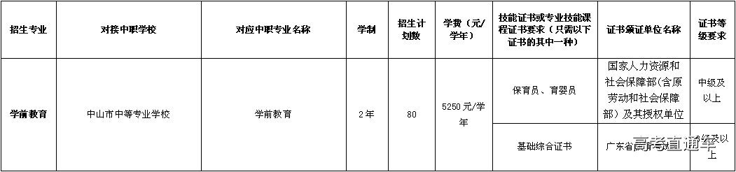 根据省有关要求,按照“地市统筹协调、试点高职院校牵头、试点中职学校深度参与”的原则,学校在中山市中等专业学校设置高职学前教育专业学院,开展高职学前教育专业学院试点班招生工作。