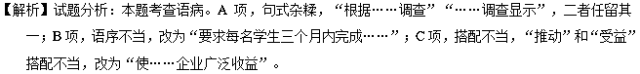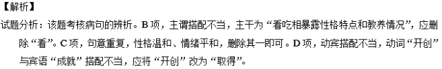 【考点定位】辨析并修改病句。能力层级为表达运用E。
