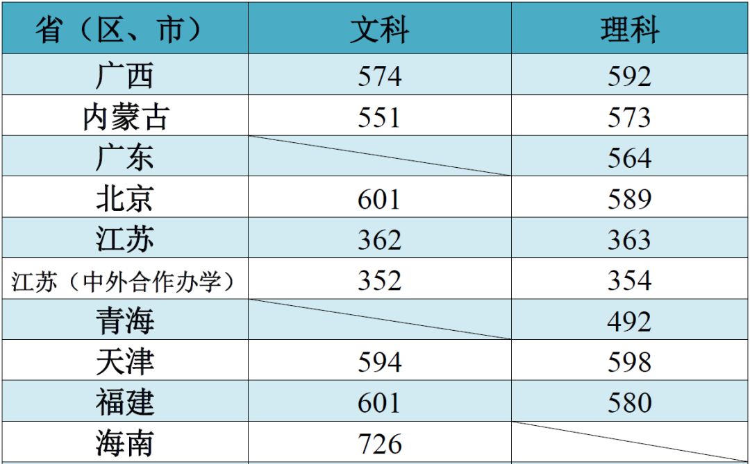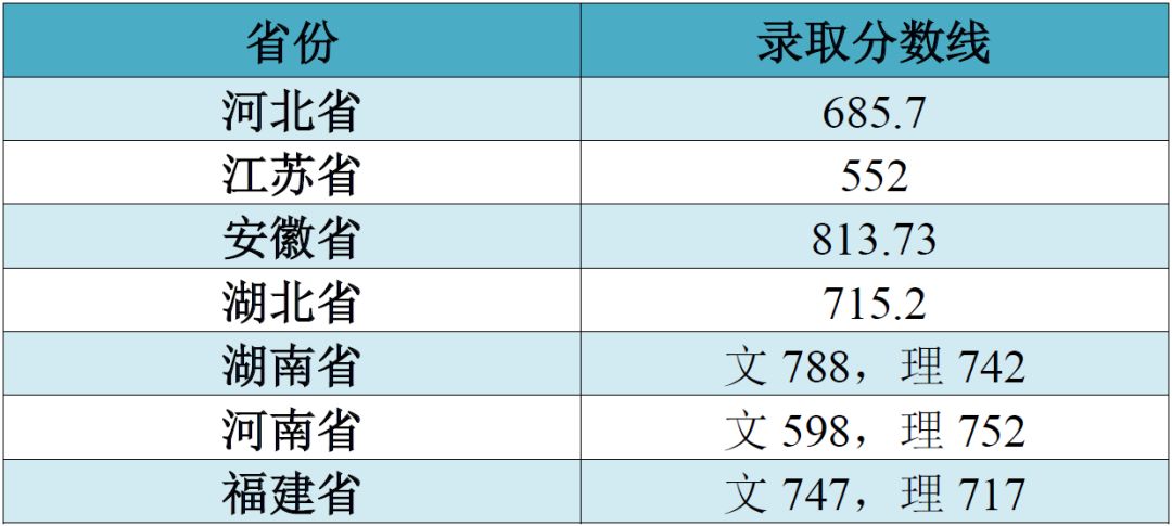 部分省(区、市)录取工作已结束,录取分数线如下:
