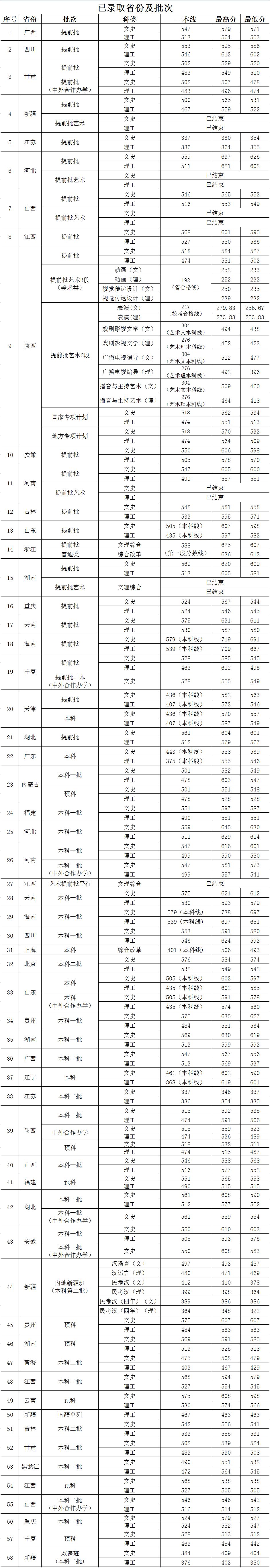 截止2018年7月31日,我校在全国各个省份录取情况如下表所示: