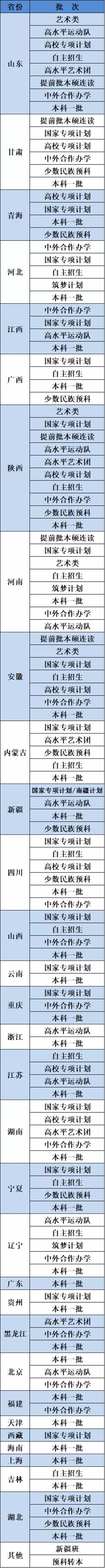 各省已录取批次
