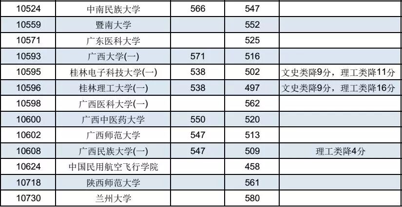 广西2018年普通高校招生专项计划批投档分数线(征集)