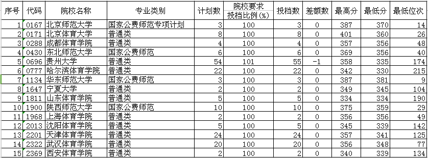 贵州省2018年高考体育(文、理)一本平行志愿投档情况(7月8日)