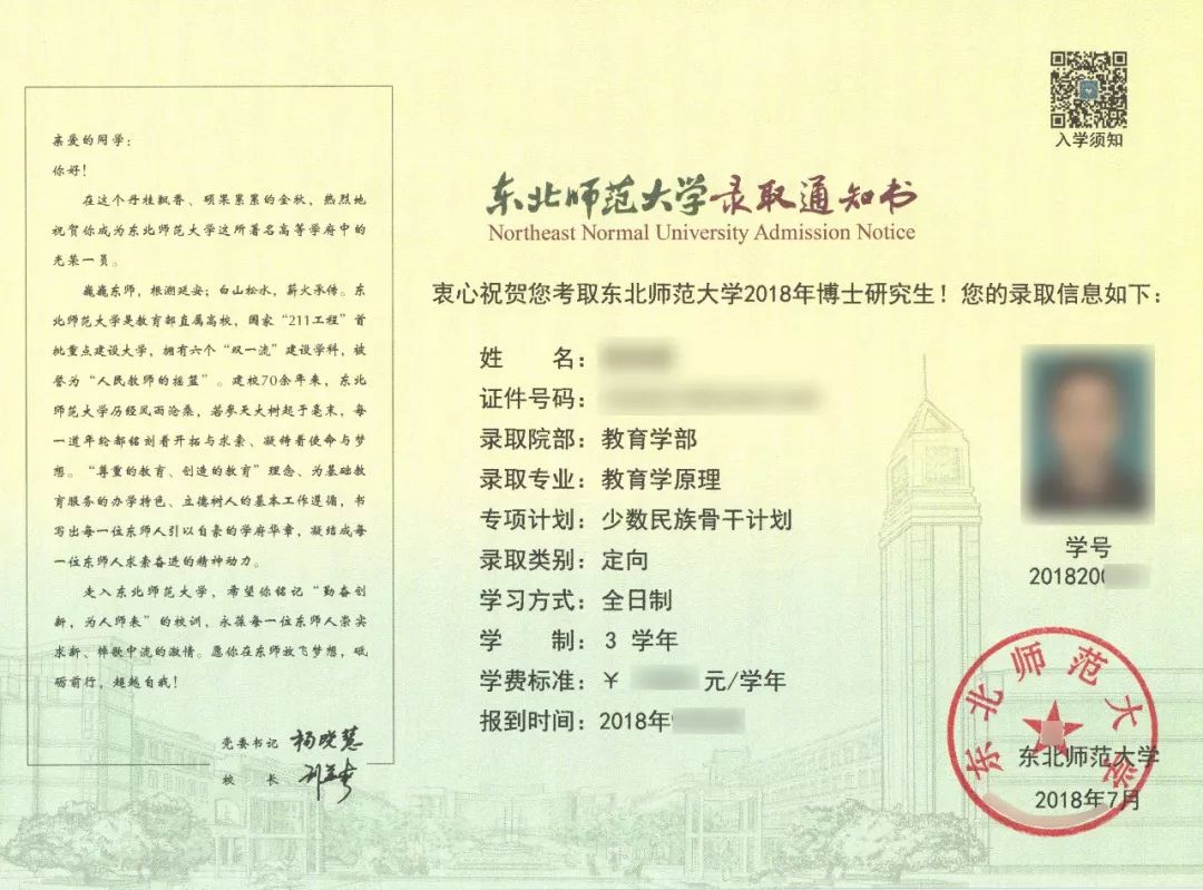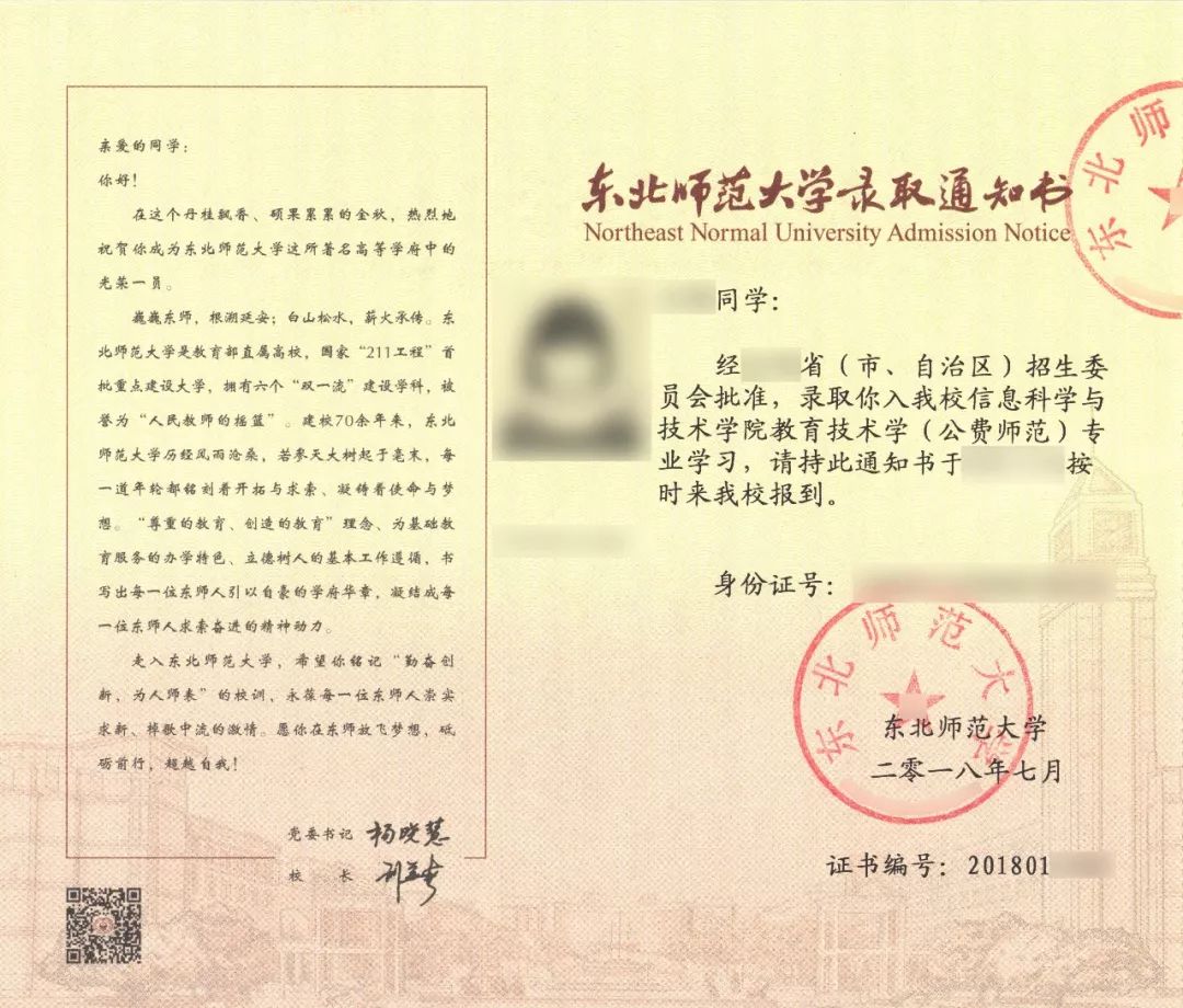 为了彰显了东北师范大学深厚的人文底蕴和浓厚的学术氛围,今年我校对“录取通知书”进行了重新设计,统一本科生、硕士研究生、博士研究生录取通知书风格。2018级新生将收到新版录取通知书。