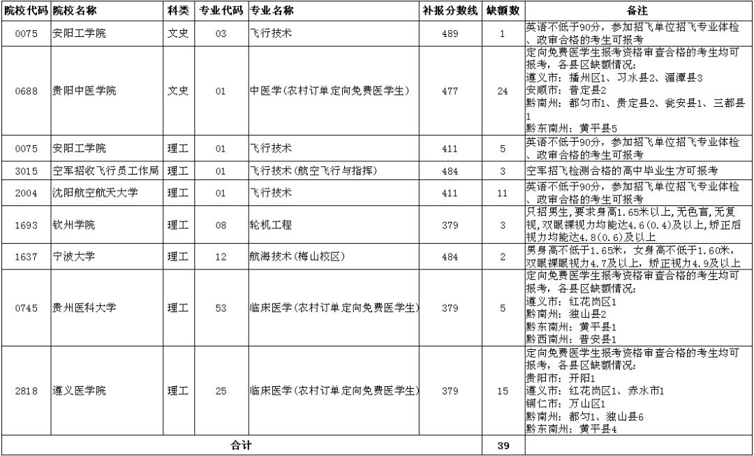 二、其他院校补报缺额数及补报分数线见附表;考生补报志愿时,请仔细查阅《贵州省2018年高考高校招生专业目录》和院校招生章程,了解院校招生专业的详细要求。