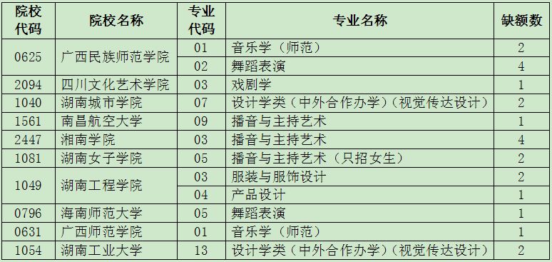 附:部分艺术类梯度志愿本科院校缺额情况统计表