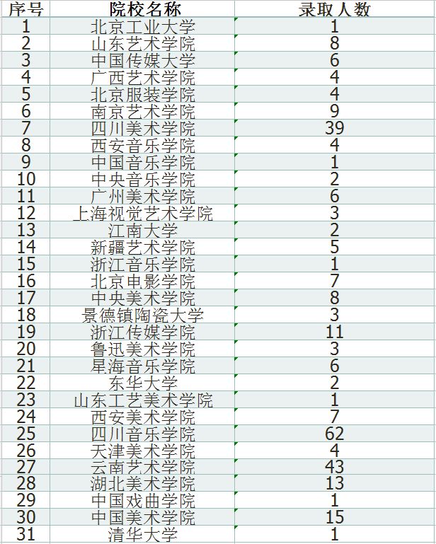 按照教育部艺术类专业招生工作规定独立设置本科艺术学院(含参照执行的院校)及相关部属高校面向全国招生可不下达分省招生计划,招生院校可根据第一志愿考生专业及文化成绩在全国的排名情况,向各省级招办提供拟录取名单,省级招办据此投档,招生院校按公布的招生简章择优录取,全部院校录取情况如下: