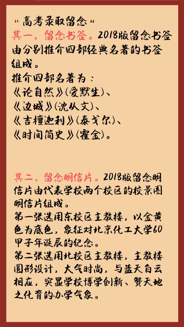 而“高考录取留念”则是给新生们的小礼物:书签和明信片。