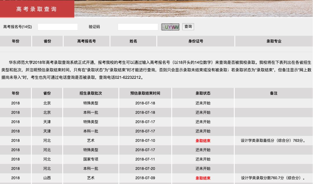 2、考生可在华东师范大学本科招生网“高考录取查询”系统中:https://zsb.ecnu.edu.cn/webapp/admitSearch-new.jsp查看录取进程(文末阅读更多直达);