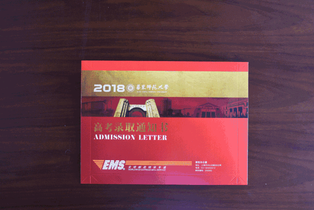 2018年华东师范大学首批录取通知书EMS已于7月10日下午从上海寄出。首批140份通知书将寄往已完成录取的上海综合评价批次的考生们。