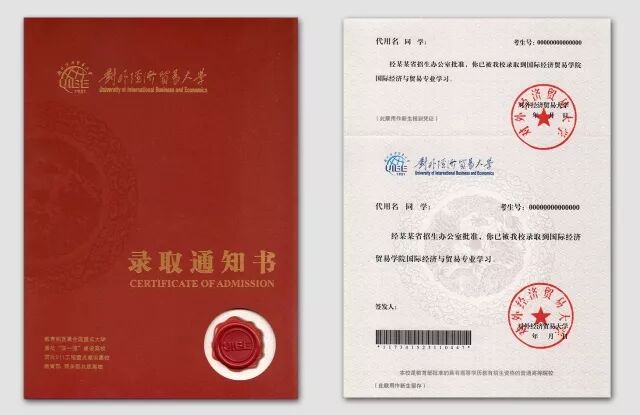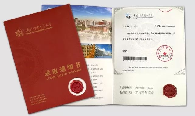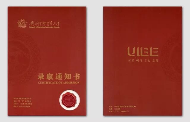 打开录取通知书,一枚红色“UIBE” 印迹跃然纸上,通过学子的努力,你已经成为UIBE的一员,这枚印迹会伴随你一生,不会随着时间推移而褪色,相信你会为她而骄傲!