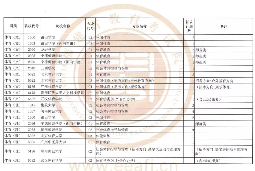 今年福建省体育类本科批仍有缺额计划须进行第一次征求志愿(具体附后)。请考生在填报征求志愿时注意以下事项: