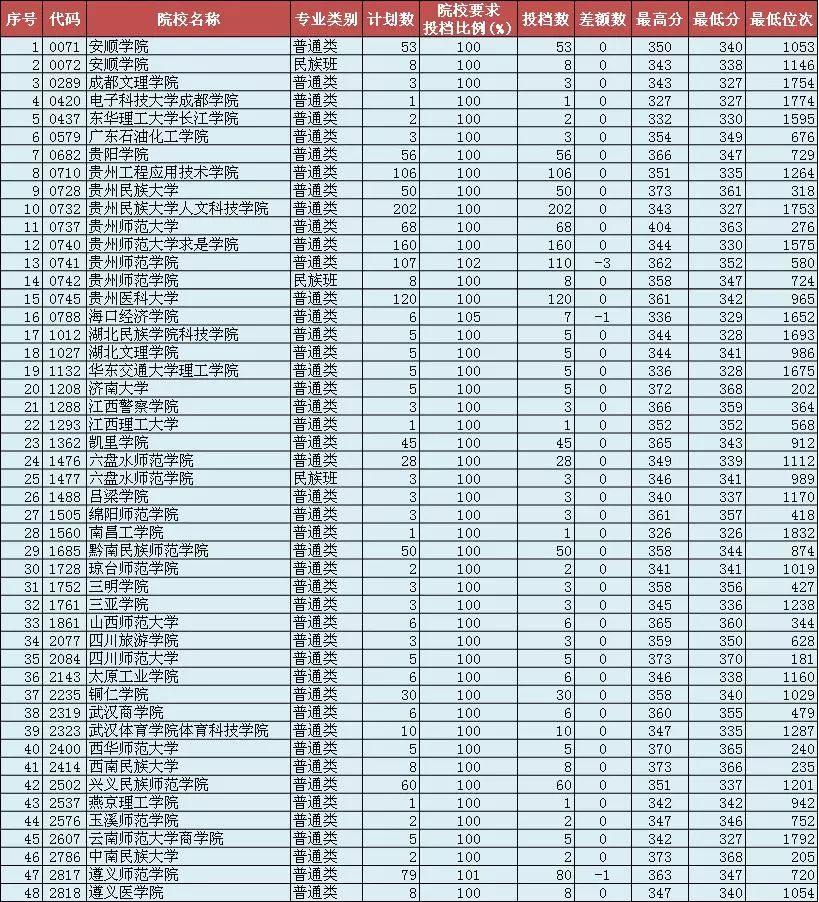 贵州省2018年高考体育(文)二本平行志愿投档情况(7月12日)