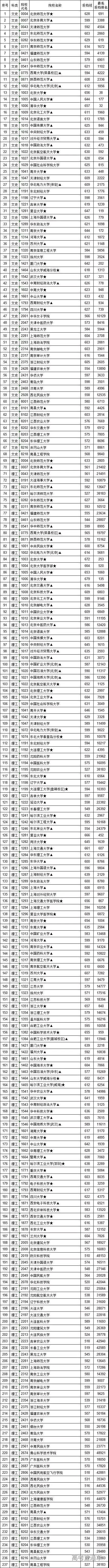2、本批次投档线达到600分的高校,文史类有44所,理工类有66所。截止目前,600分以上考生出档人数为1929名,其中,文史类371名,理工类1556名,艺术类2名。据统计,有15.7%的600分以上高分考生已顺利出档。