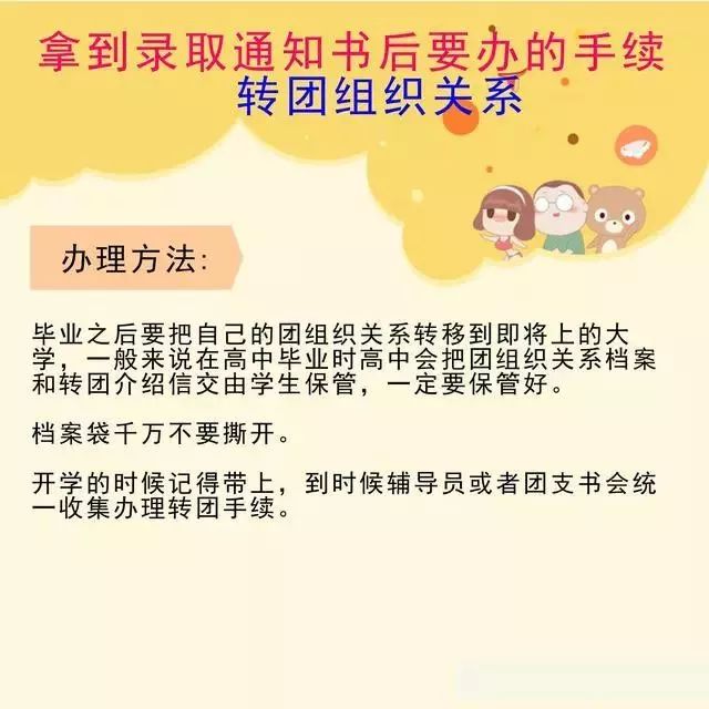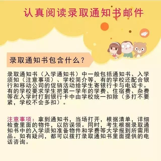 收到通知书后,也不要以为一切都万事大吉了。还有一些需要注意的事项及需要办理的手续,希望准大学生重视起来!要不然上大学后可能会有麻烦!