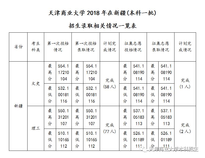 天津商业大学本科招生录取结果公示:新疆【本科一批】