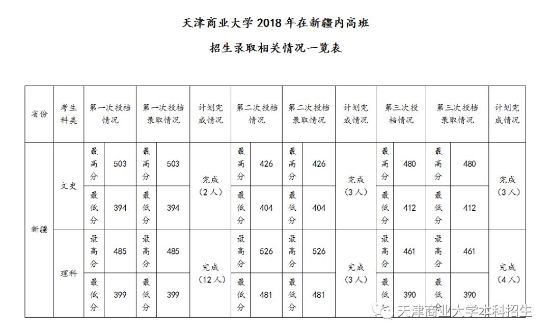 天津商业大学本科招生录取结果公示:新疆【内高班】