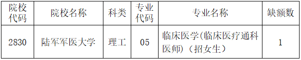 附表:提前批本科理工类陆军军医大学补报志愿缺额数统计表