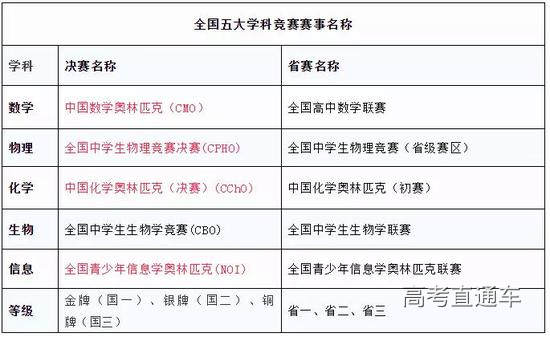 新高二、新高三的同学、家长、老师一定要密切关注五大竞赛复赛(联赛)的举办时间,尤其是新高三的考生以免错过参赛机会。因为五大学科竞赛是自主招生高校认可度最高的奖项,考生们如果能在五大学科竞赛中获奖(国决、省奖、市级奖),自主招生初审的通过率会很高,拿到高考降分的可能性也越大。