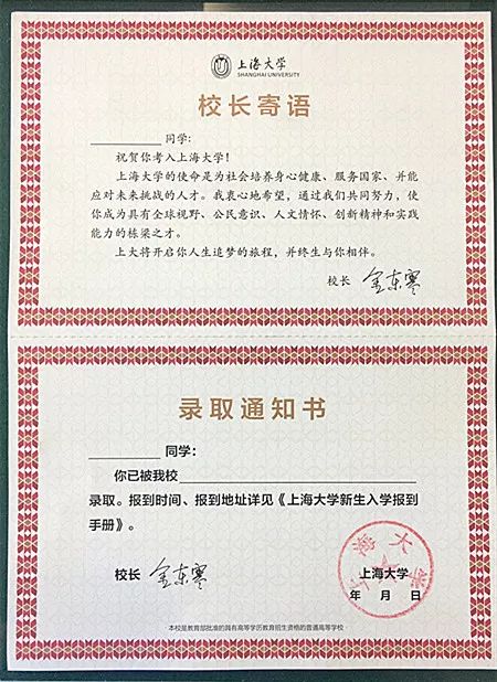 各位同学,上海大学第一批录取通知书已从今日起寄出。随着录取工作的陆续展开,各个批次的录取通知书也将陆续寄出啦!为了让大家能提前了解上大、感受上大,我们精心准备了好几份神秘“大礼”,它们将与录取通知书一起飞向你们,下面小编就“剧透”这些饱含上海大学心意的亮点吧~