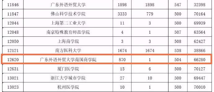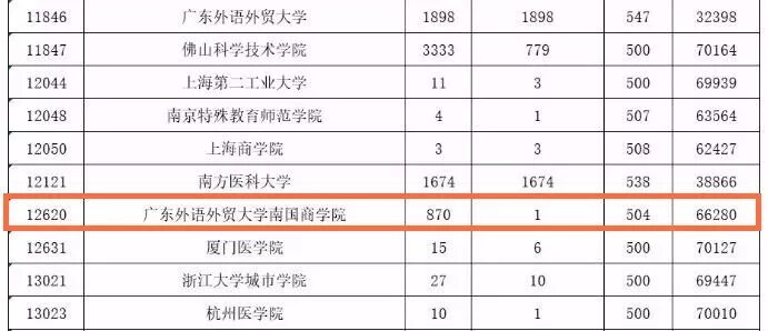 投至我校的考生为理科504分,超过广东省理科优先投档线4分,超过广东省本科录取最低控制线128分,排位为:66280,该生报考的第一志愿为西班牙语专业。