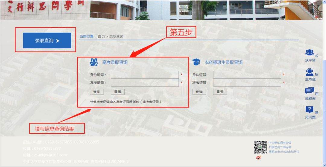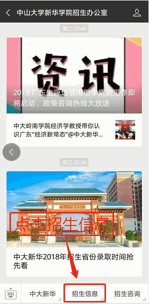 (一)“中山大学新华学院招生办公室”官方微信公众号查询