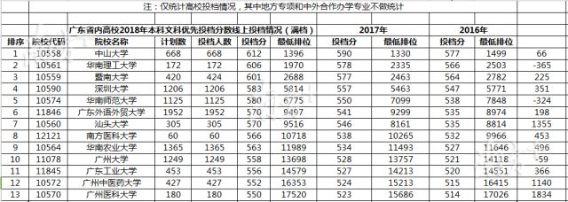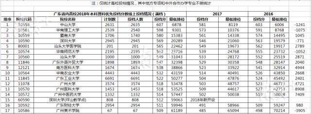 理科此轮投档前10名为中山大学、华南理工大学、暨南大学、深圳大学、汕头大学医学院、华南师范大学、汕头大学、广东外语外贸大学、南方医科大学、华南农业大学。