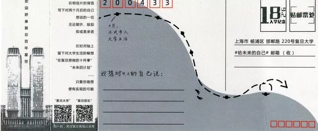 在明信片的背面写下对两个月后的自己想说的一切,无论期许、鼓励,抑或是承诺,尽情描绘你所想的大学生活吧!只要你敢想,便有实现的可能!