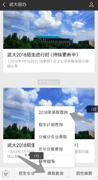 关注武汉大学招生办公室官方微信:武大招办
